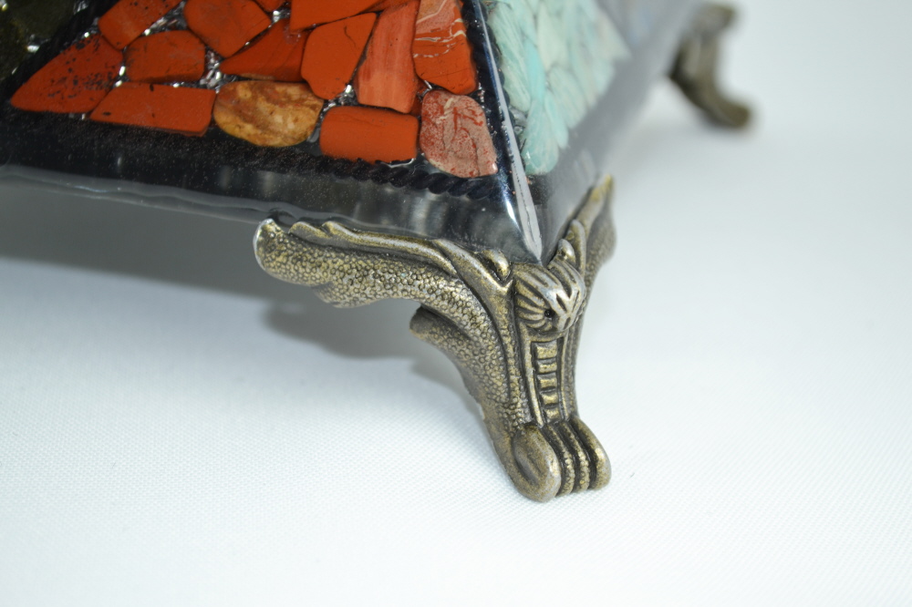 Bergkristall (groß & klein), Gold-Obsidian, Aventurin, Jaspis, Granat Rot, Amethyst, Wismut, Hämatit, Lapislazuli, Amazonit, Eisen, Aluminium, Aufkleber Baum des Lebens, Nano-beschichtetes Kupfer, Füße